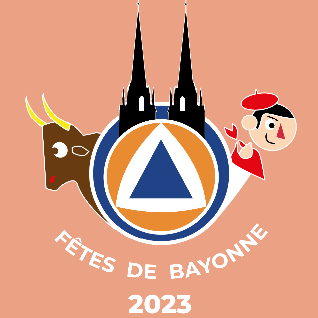 Dans le respect des directives, le logo original de la Protection Civile reste en premier plane. L’utilisation pour le texte de la Monstera, qui est la Typo emblématique de la Protection Civil. La mention "Fêtes de Bayonne 2023" est également intégré en dessous du blason.