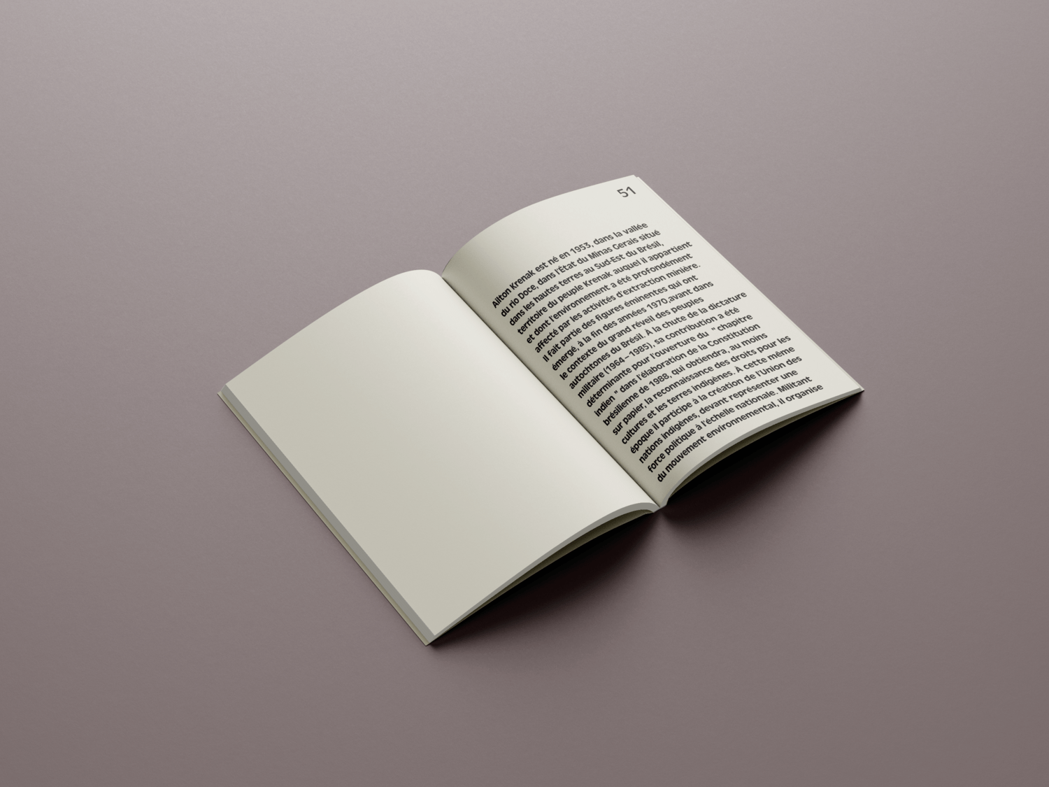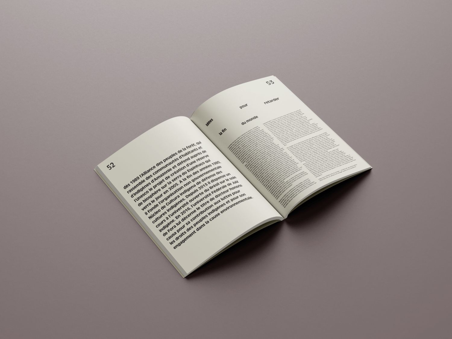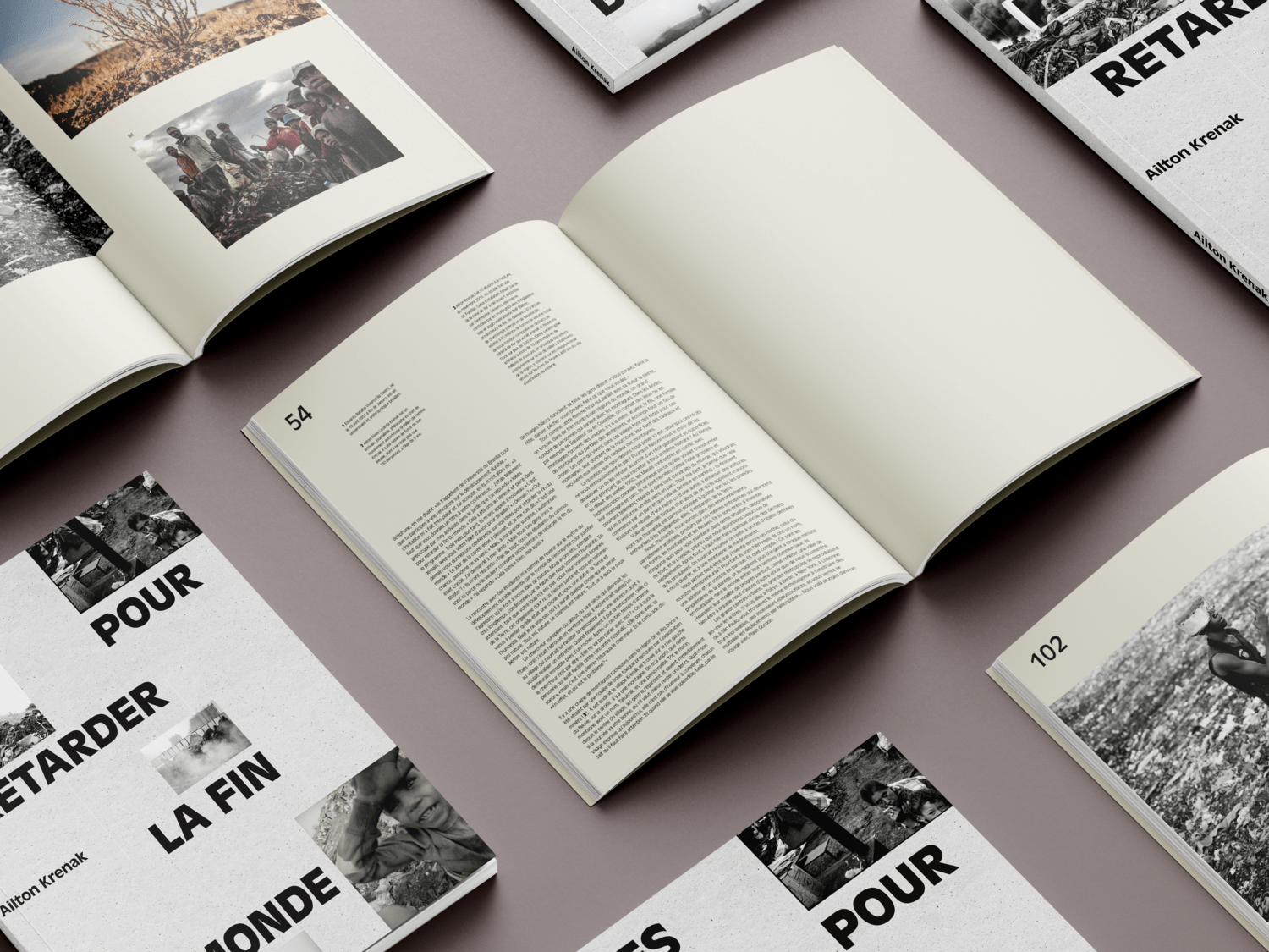 Mon projet de réédition se base sur un recueil de conférences de l’auteur Ailton Krenak « Une idées pour Retarder la Fin du Monde », publié pour la première fois en 2020. Dans ce projet, j'essaye de donner une nouvelle vision à ses paroles.